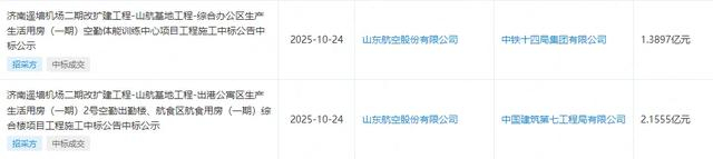这两个项目也只是山航基地工程的一部分而已,总投资远远超过这个数字,分别属于综合办公区生产生活用房(一期)和出港公寓区生产生活用房(一期)。