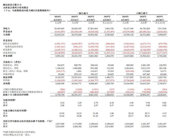 数据上,受游戏业务增长放缓影响,网易二季度整体业绩略低于市场预期,虽然同比仍保持增长,但环比数据暴露出增长动能的疲软迹象,具体来看,游戏及相关增值服务作为网易的核心引擎,二季度净收入为228亿元,同比增长13.7%,但环比下滑5%,且低于市场预期的233.7亿元。更值得注意的是,游戏业务毛利润160.1亿元仅略超预期,显示成本控制压力依然存在。