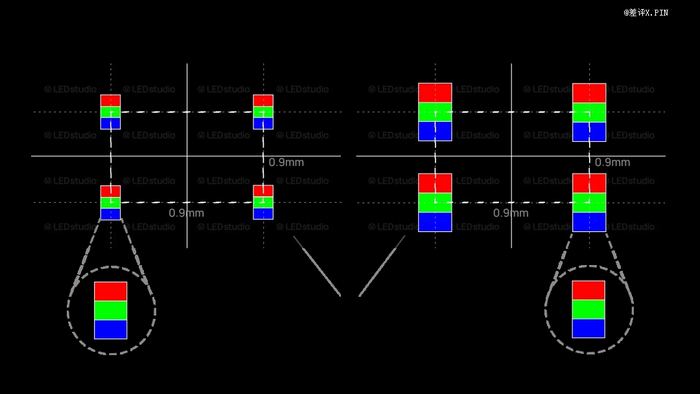 Micro LED 在同样的像素间距下,像素尺寸更小、排列更密集